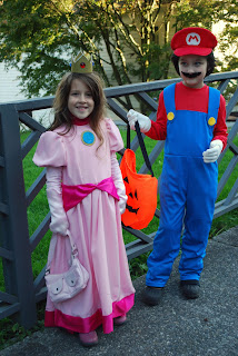 We put the finishing touches on costumes today, including downsizing Annabelle's long gloves for her transformation into Princess Peach.