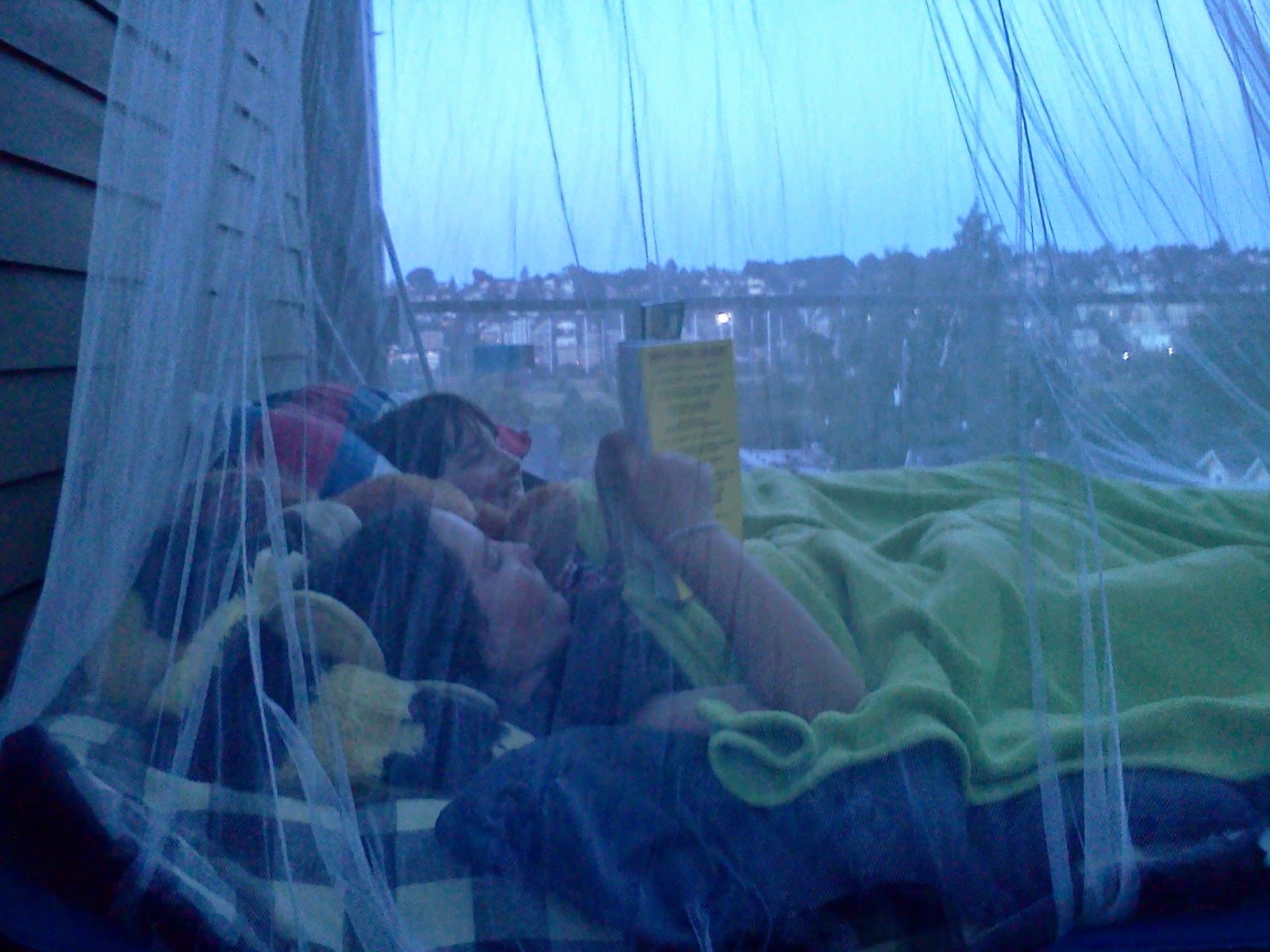 I WEAR MY SUNGLASSES AT NIGHT: It's darn near summertime, and the kids have been lobbying to sleep out on the deck. Last night was their first 'summer' sleepout.