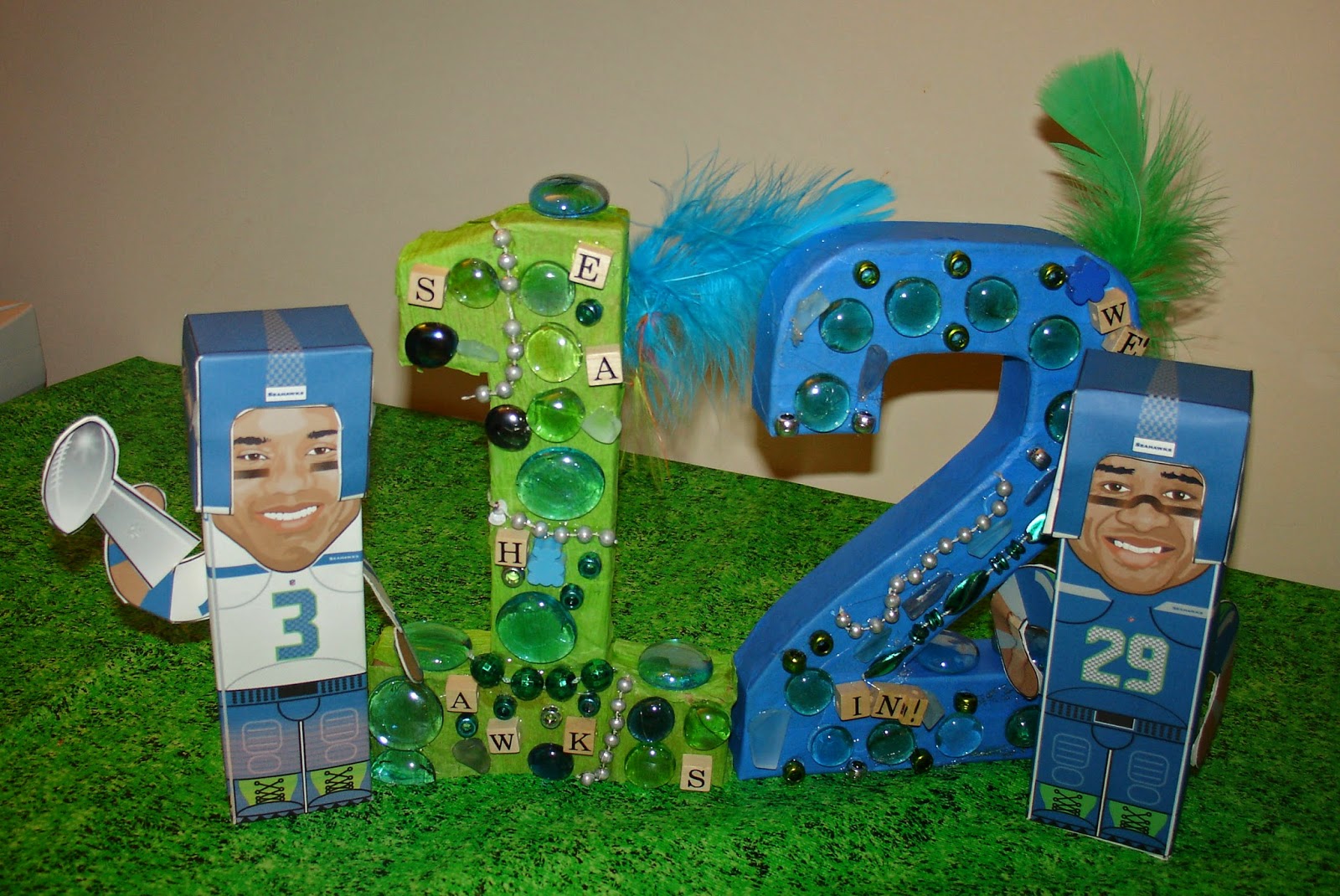 PAPERHAWKS: We've been hitting the papercrafts hard lately, and one recent project was making boxy little Seahawks.