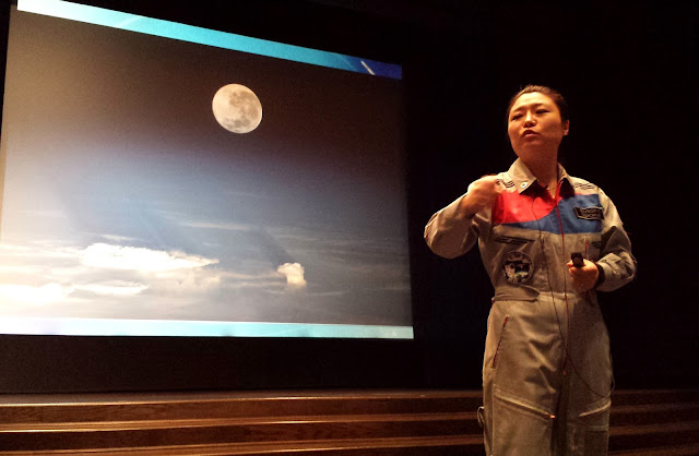 Yi So-Yeon is a biotechnologisty and South Korea's first and only astronaut. Recently, she gave a speech at the Museum of Flight, about being an astronaut, and some of the things she went through while becoming an astronaut. Yo So-Yeon beat 32,000 other Koreans to become the one and only Korean astronaut so far. The South Korean government paid equivalent to twenty million dollars to give her a seat on the Soyuz TMA-12 mission, making her the 49th astronaut that was a woman. Yi So-Yeon has a PHD in biotechnology, but her grandmother and mother were not as fortunate. So-Yeon's mother wasn't able to go to high school, and her grandmother wasn't able to get an education at all!One of the barriers that made it difficult for So-Yeon to become an astronaut out of 32,000 other Koreans was the fact that she was a single, young woman. Many people in Korea and Russia thought that single, young women were mentally unstable. Yi So-Yeon said on stage that singing was one of her favorite things, and proceeded to show us a video of her singing "Take Me to the Moon" on the ISS. Near the end of the presentation, she let the audience ask some questions. My sister asked if, and how often she was told that she couldn't do it, and So-Yeon said that she was told "no" *a lot* while becoming an astronaut.And here are Annabelle's thoughts ...